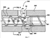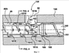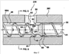 Более подробно каждое отверстие 204 втулки содержит верхнюю и нижнюю части 205, 206, которые предназначены соответственно для размещения головной части 294 и стержня 298 очищающего элемента 290. Точная посадка нижней части 206 отверстия втулки и стержня 298 очищающего элемента 290 служит как для направления очищающего элемента 290 при его возвратно-поступательных движениях, так и для предотвращения утечки расплава через пространство между ними. Кольцеобразная поверхность у основания сравнительно широкой верхней части 205 обеспечивает место расположения пружины 244 очищающего элемента.