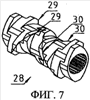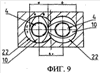 фиг. 9 – поперечное сечение двухшнекового экструдера с герметично входящими друг в друга на всем периметре шнековыми сегментами;
