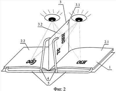 Так как расстояние между глазами человека конечно, то можно одновременно видеть страницы 2.1 и 2.2, затем одновременно последующие страницы 3.1 и 3.2 и т.д.