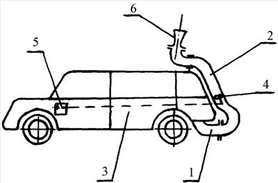 На чертеже схематично представлено предлагаемое устройство отвода отработанных газов автомобиля.