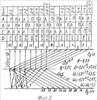На осях лучевой диаграммы нанесены шкалы логарифма величины передаточных чисел. Верхняя шкала соответствует выходному валу на передачах переднего хода (16-1), нижняя шкала в правой части – передачи заднего хода (8R-1R), в левой части – на промежуточном валу. Точка 0 на средней горизонтали слева соответствует первичному валу, остальные точки – вторичному валу. Вертикальный луч соответствует передаточному числу, равному единице. Наклон луча направо указывает на замедляющий режим работы: чем больше наклон луча, тем выше величина передаточного числа. Наклон луча налево (см. фиг.2. слева внизу, лучи 2 и 3) характеризует работу зубчатой пары в ускоряющем режиме. В логарифмическом масштабе наклон луча постоянный на любом участке лучевой диаграммы. Лучи пар шестерен внешнего зацепления обозначены 1, 2, 3 и 4, а лучи, характеризующие режимы работы планетарного механизма, – U=1,0; Ub ah=K+1 и Uh ab – K.