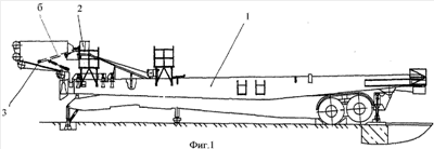 на фиг.3 – агрегат в положении перегрузки изделия, траверса в поднятом положении;