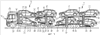 Общим для показанных автопоездов является то, что у автовоза 10 средняя часть 21 рамы 12 автовоза 10, расположенная за кабиной 19, при необходимости оснащенной спальным отделением 20 для водителя, расположена ниже по сравнению с рамой обычного грузового автомобиля. Как показано на фиг.1, передняя часть 22 рамы располагается над передней осью 23, а задняя часть 24 располагается над задней осью 25 и, следовательно, в плоскости расположения обычной рамы обычного грузового автомобиля. Однако за передней осью 23 и перед задней осью 25 рама 12 имеет выдающуюся вниз среднюю часть (выгибы 26, 27), вследствие чего эта средняя часть 21 расположена ниже, чем передняя часть 22 и задняя часть 24.