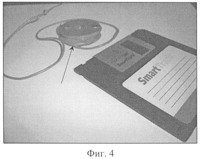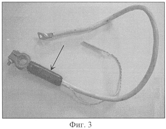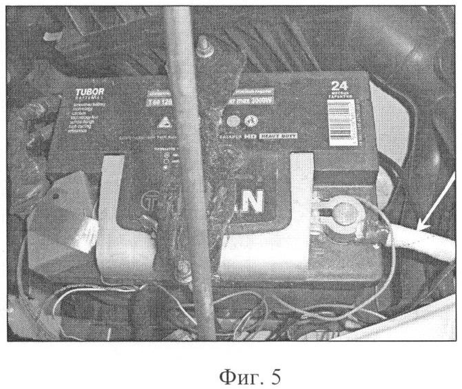 Второй вариант размещен в «шайбе», которая располагается между корпусом двигателя и наконечником минусового провода аккумулятора. Внешний вид приведен на фиг. 4.