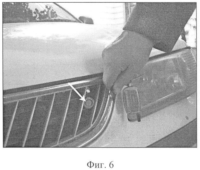 Один из описанных вариантов автоматического выключателя установлен на автомобиле (Фиг.5) и эксплуатируется более 2 месяцев. Он обеспечивает отключение аккумулятора при повышении температуры свыше 150°С в моторном отсеке или салоне автомобиля, не подключается аккумулятор при недостаточном уровне тормозной жидкости. Выключатель снабжен дополнительной охранной сигнализацией, аккумулятор включается через контроллер Z-5R, который предназначен для установки и для ограничения доступа в подъездах жилых домов и др., индикатор и считыватель которого размещены в передней облицовке автомобиля (фото на фиг.6).