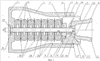 Также известна конструкция фрикционно-эластомерного поглощающего аппарата [Патент RU №2225306, B61G 9/16, 10.04.2004]. Аппарат состоит из корпуса с закрытой концевой частью и противоположной открытой концевой частью, выполненной со сходящимися вовнутрь фрикционными башмаками, которые в свою очередь взаимодействуют с нажимным клином с центральным каналом и передают нагрузку через пружинный упор пакеты эластомерных подушек, установленному между закрытой концевой частью корпуса и пружинным упором. Через пакет эластомерных подушек, а также пружинный упор и центральный канал нажимного конуса проходит направляющий стержень, прижатый к корпусу пакета. Для удержания клина и фрикционных башмаков в открытой концевой части корпуса в последнем имеются выступы, под которые проворачиваются ответные фланцы клина при сборке.