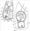 Это устройство выполнено из двух частей 1 и 2 для монтажа средств соединения и замыкания рукоятки 3 в различных положениях, часть 2 содержит для этого зубчатый сектор 12, воздействующий на замыкающий элемент (не показан), установленный наклонно в полости 13, которой оснащена первая часть 1.