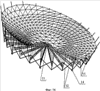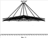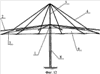 Фиг.10, 11 изображены виды силового каркаса без сетеполотна и формообразующей структуры, где 1 – центральный узел; 2 – спица; 3 – консоль; 4 – оттяжка; 5 – мачта.
