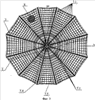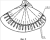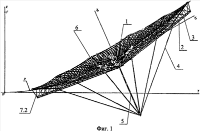 Фиг.5 изображена принципиальная схема формообразующей структуры, где 2 – спицы; 6 – сетеполотно; 7.1 – ленты; 7.2 – стяжные нити; 7.4 – шнур тангенциального контура; 7.5 – шнур между спицами 2; 7.6 – кронштейн со скобой 7.6.1.