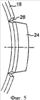 Если требуется еще большая надежность уплотнения, можно предусмотреть еще одно дополнительное газонепроницаемое уплотнение, как в представленном варианте выполнения, между поверхностью 10 ободка и противолежащей поверхностью 34 стеновой части 30. Таким образом, в данном варианте выполнения указанные две поверхности являются комплементарными уплотнительными поверхностями, находящимися в уплотнительном взаимодействии друг с другом. Если бы давление в бутылке стало выше атмосферного (что могло бы произойти либо в результате высвобождения углекислого газа из газированного напитка, либо в результате расширения газа, находящегося в свободном пространстве бутылки над жидкостью, которое происходит вследствие повышения температуры), центральная часть вогнутого основания 32 деформировалась бы кверху, и это, по существу, привело бы к тому, что наружный край основания 32 и, соответственно, нижний край стеновой части 30 немного переместились бы наружу. Это вызовет повышение контактного давления между уплотнительными поверхностями 10 и 34 и, следовательно, повысит надежность данного дополнительного газонепроницаемого уплотнения. Таким образом, контейнер для напитков, выполненный в соответствии с изобретением, не только имеет как первичное, так и вторичное газонепроницаемое уплотнение, но также имеет дополнительное газонепроницаемое уплотнение. Надежность или уплотняющая способность указанного дополнительного уплотнения повышается по мере увеличения давления газа внутри контейнера.