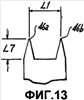 фиг.13 – вид сбоку ножа с двумя лезвиями, который может быть использован для формирования ломкого участка контейнера, сконструированного согласно настоящему изобретению;