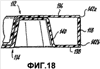 фиг.18 – вид контейнера, показанного на фиг.16, в частичном поперечном сечении по линии 18-18 на фиг.17, в частности, иллюстрирующий конфигурацию шарнира, верхний и нижний выступы и ломкий участок;