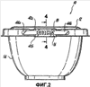 фиг.1 – вид в перспективе контейнера, защищенного от вскрытия, со средством индикации вскрытия, сконструированного согласно настоящему изобретению со взятой в качестве примера круглой конфигурацией, содержащей часть, являющуюся основанием, и крышечную часть, соединенные друг с другом посредством шарнира, имеющего ломкий участок;