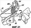 фиг.21 – частичный вид в перспективе контейнера, показанного на фиг.16, в частности, иллюстрирующий способ, посредством которого ломкий участок удаляют с шарнира;