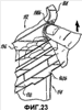 фиг.22-23 – частичные виды в перспективе контейнера, показанного на фиг.16, в частности, иллюстрирующие способ, посредством которого отделению крышечной части от части, являющейся основанием, содействуют с помощью захватывания фасонного участка, расположенного на верхнем выступе, связанном с крышечной частью, которое будет образовано при удалении ломкого участка.
