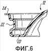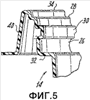 фиг.5 – вид контейнера, показанного на фиг.1, в частичном поперечном сечении по линии 5-5 на фиг.8, в частности, иллюстрирующий конфигурацию части, являющейся основанием, а также конструктивные элементы, которые способствуют зацеплению с крышечной частью, обеспечивающему возможность повторного разъединения/повторного закрывания;