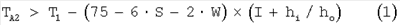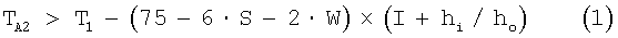 где S представляет собой об.% паров серной кислоты, a W представляет собой об.% паров воды, рассчитанные согласно предположению, что триоксид серы в газе полностью гидратируется в серную кислоту, hi представляет собой коэффициент теплопередачи на внутренней части трубы, выраженный в W/m2/k, a ho представляет собой коэффициент теплопередачи на внешней стороне трубы (трубки), выраженный в W/m2/K.