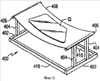 На фиг.6 представлено устройство для опирания и транспортировки листов стекла, которое предназначено для использования в сочетании с рассматриваемой здесь системой для нагревания и формования листов стекла. Более конкретно, рама 400 содержит пару направляющих 402, которые движутся по транспортной конструкции 36 аналогично направляющим 40 опорных элементов 38. На направляющих 402 установлена одна или более стоек 404, которые служат опорой опорным элементам 406 для ткани. Между элементами 406 расположена термостойкая гибкая подложка 408, аналогичная тканям, упомянутым ранее, чтобы создать структуру типа гамака, которая поддерживает листы G стекла. Поперечные элементы 410 взаимно соединяют направляющие 402 и армируют раму 400. Формование листов стекла выполняется аналогично рассмотренному выше в связи с фиг.4. Более конкретно, листы G стекла располагают на термостойкой гибкой подложке 408, выполненной в виде термостойкой деформируемой ткани, а раму 400 перемещают через нагревающий лер. Когда листы G стекла размягчаются, они начинают прогибаться на термостойкой гибкой подложке 408. Когда рама и листы G стекла достигают станции гибки, раму выравнивают между верхней технологической формой и нижней технологической формой тех типов, которые были упомянуты ранее. Затем перемещают эти технологические формы друг относительно друга для зажима между ними опертых предварительно сформованных листов стекла с использованием камеры, находящейся под давлением, нижней технологической формы, при этом центральные участки листов G смещаются к зажимной грани верхней технологической формы. После формования листы G стекла можно оставить на раме или передать на отжигательное кольцо для охлаждения. Очевидно, что при таком типе конструкции не обязательно покрывать нижнюю технологическую форму прессовой тканью, поскольку листы G стекла уже опираются на гибкую термостойкую ткань, предназначенную для зажима нижней технологической формы во время операции зажима.