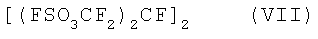 В электролит 35 мл (60,5 г HSO3F) и 2 г KSO3F при потенциале Е=2,4 В относительно Cu/Cu2+ электрода сравнения вводили гексафторпропилен (II) со скоростью 2 мл/мин. После пропускания 1500 Кулон (0,41 А/час) электричества обработкой реакционной массы было выделено 2,8 г смеси бис-фторсульфатов (III)/(IV) в мол. соотношении 1:1 (ЯМР 19F; ГЖХ). Выход по току 84%.