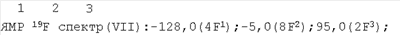 Спектр ЯМР 19F ( , ppm.) (смесь диастереомеров): -7.0 и – 6.6 (6F1,2); м с центром 100.0 (2F3,4); -3.4 и -2.9 (4F5,6); -126 (2F7,8)