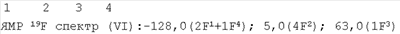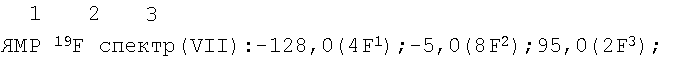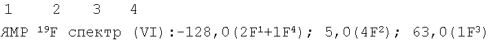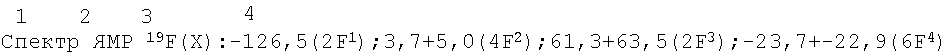 Спектр ЯМР 19F ( , ppm.): 3.8 (3 F1); 65.0 (1 F2); 7.0 (2 F4); 126.0 (2 F3,5)