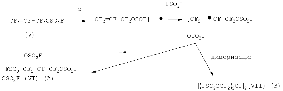 Т.о., фторсульфатирование гексафторпропилена на аноде из сплава Pt-Ir показало, что: