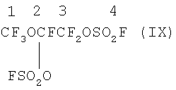 Установлено, что электролиз гексафторпропилена (II) во фторсульфоновой кислоте в потенциостатическом режиме приводит к образованию смеси вицинального бис-фторсульфата CF3CF(OSO2F)CF2OSO2F и фторсульфатодимера а не смеси двух изомерных бис(фторсульфонилокси)перфторизогексанов, образующихся из гексафторпропилена под действием электрохимически генерируемого пероксидисульфурилдифторида (Millauer Н. Deutschland Patent Application No DE 3128 118 A1, 1981; Schwerfeger W., Sigemund G, Millauer Н., тезисы 11-ого Международного Симпозиума по химии фтора, Берлин, 1985, с.82).
