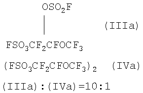 Аналогично предыдущему примеру электролиз проводили в гальваностатическом режиме при 100 мА, периодически отбирая органические продукты реакции и добавляя к электролиту равный объем HSO3F. После пропускания 9,61 А/час электричества электролит вылили на лед, орг. продукты объединили, обработали по методике, указанной выше, и получили 62 г смеси (III):(IV)=1:1 (изомер IVa обнаружен не был). Выход по току 73%.