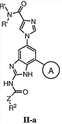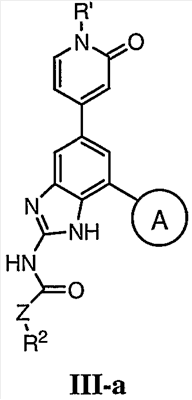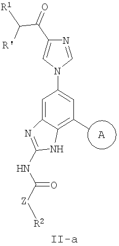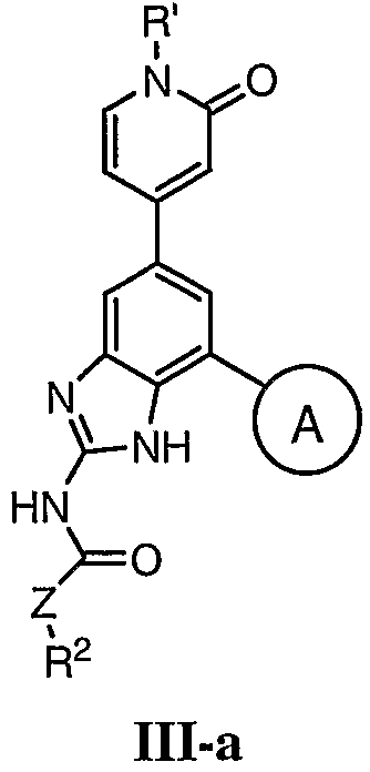 В соответствии с одним из вариантов изобретения заместителями в кольце А формулы I, если они присутствуют, являются заместители, выбранные из оксо, N(R’)2, С(О)N(R’)2, CO2R’, галогена, N(R’)SO2R’, C(O)R’, OR’ или R’. В соответствии с другим вариантом изобретения заместителями R’ в кольце А формулы I являются метил, этил, пропил, пиперазинил, пиперидинил или морфолинил, где указанные группы R’ необязательно замещены R°, N(R°)2 или OR°.