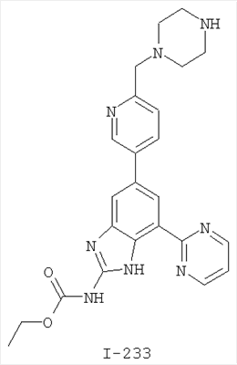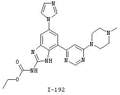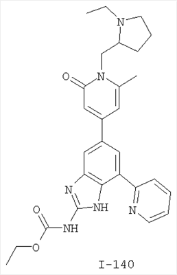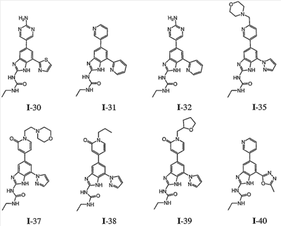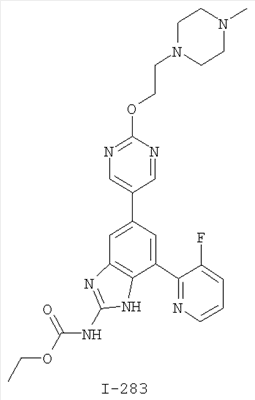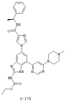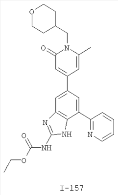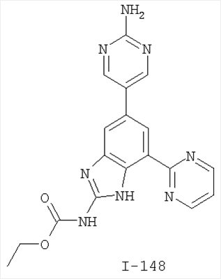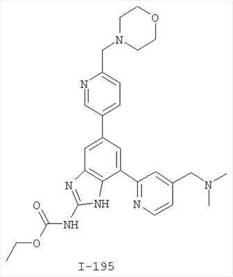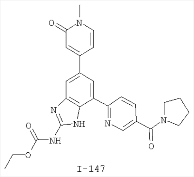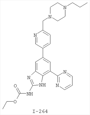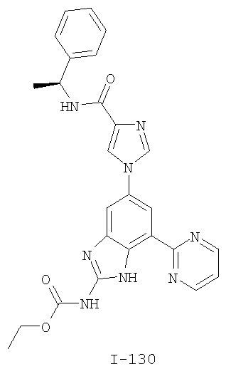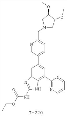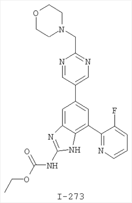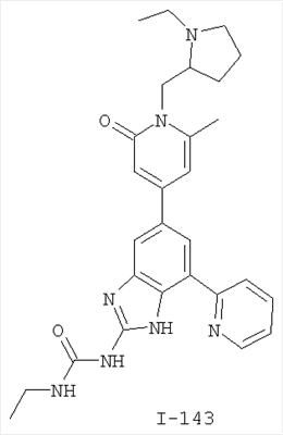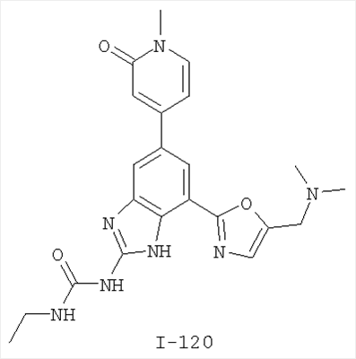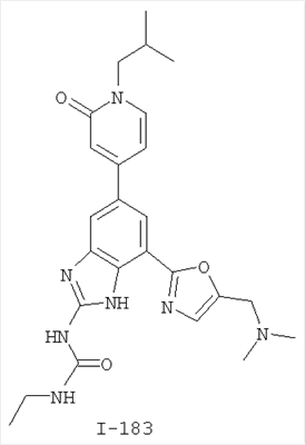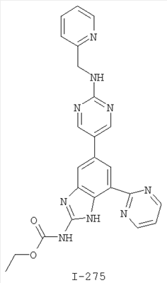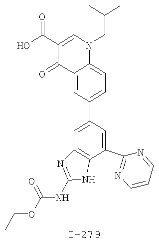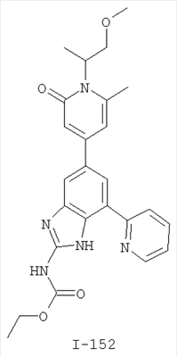Анализ на АТФазу проводили при 30°С в забуференных растворах, содержащих 100 мМ Трис, рН 7,6, 1,5 мМ MgCl2, 150 мМ KCl. Система для связывания содержала (в конечной концентрации) 2,5 мМ фосфоенола-пирувата, 200 мкМ никотинамид-адениндинуклеотида (NADH), 1 мМ DTT, 30 мкг/мл пируват-киназы и 10 мкг/мл лактат-дегидрогеназы. К этой системе добавляли 40 наномоль фермента (374 кДа-субъединица Gyr A2B2 от Staphylococcus aureus) и ДМСО-раствор ингибитора до конечной концентрации 4% и реакционную смесь оставляли на 10 минут при 30°С для инкубирования. Затем реакцию инициировали добавлением АТФ до конечной концентрации 0,9 мМ и скорость исчезновения NADH при 340 нанометров измеряли в течение 10 минут. Величины Ki вычисляли по профилям скорости в зависимости от концентрации.
