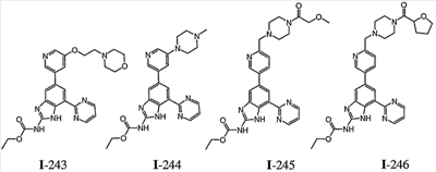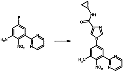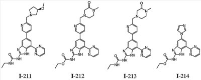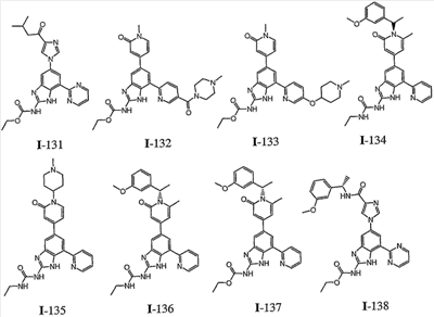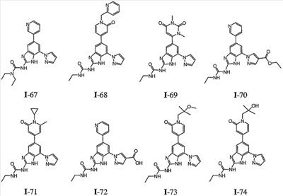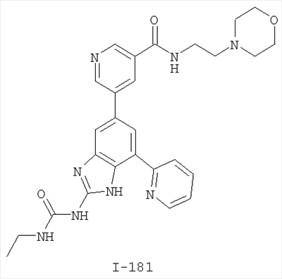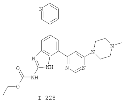 Превращение АТФ в АДФ ферментом Торо IV связано с превращением NADH в NAD+, и было измерено по изменению оптической плотности при 340 нМ. Торо IV инкубировали с ингибитором (4% ДМСО, в конечной концентрации) в буфере в течение 10 минут при 30°С. Реакцию инициировали АТФ и проводили непрерывный мониторинг скорости реакции в течение 20 минут при 30°С на планшет-ридере Molecular Devices SpectraMAX. Константу ингибирования, Кi, определяли по кривым скорости реакции в зависимости от ингибирования [ингибитора], построенным по уравнению Моррисона для жестко связывающихся ингибиторов.