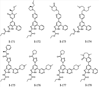 В некоторых вариантах осуществления изобретения заместители группы R1 формулы I, если они присутствуют, выбраны из галогена, оксо, -(Т)y-Ar, R’, CO2R’, OR’, N(R’)2, SR’, C(O)N(R’)2, NR’C(O)R’, SO2R’, SO2N(R’)2 или NR’SO2R’. В соответствии с другими вариантами изобретения заместители группы R1 формулы I, если они присутствуют, выбраны из оксо, фтора, хлора, N(СН3)2, NHCH2СН3, NH-циклопропила, NH2, NHC(О)СН3, С(О)NH-циклопропила, метила, этила, трет-бутила, изобутила, циклопропила, изопропила, СН2-фенила, СН2-пиридин-3-ила, ОН, ОСН3, ОСН2СН3, ОСН2-фенила, ОСН2-пиридин-3-ила, СН2-пиперидинила, СН2-циклопропила или СН2СН2ОСН3.