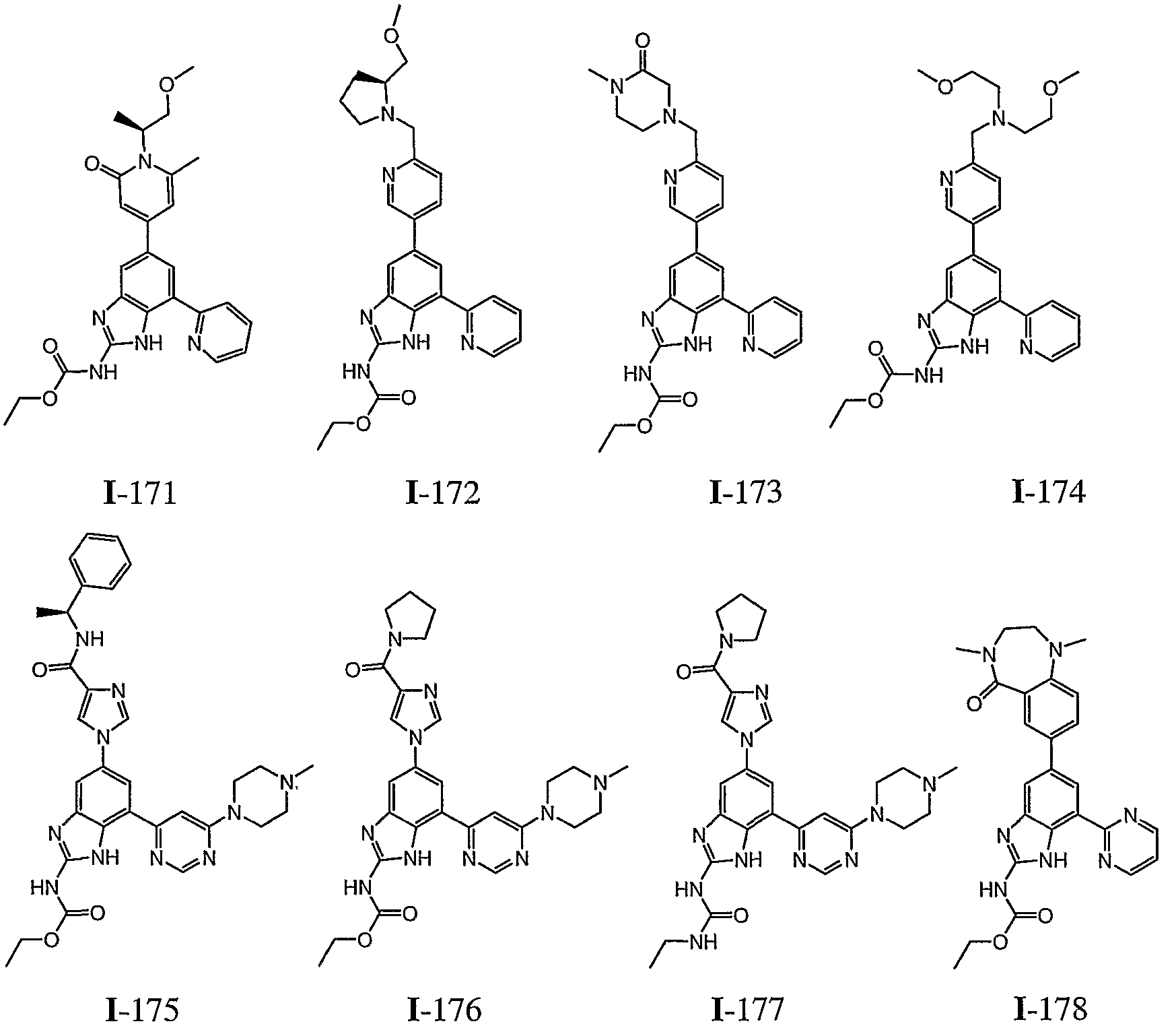 В некоторых вариантах изобретения кольца А формулы I выбраны из колец a, b, c, d, e, f, g, h, i, j, k, l, m, p, q, r, s, t, v, w, x, y, z, aa, bb, cc, dd и ее, где каждое кольцо А необязательно замещено заместителями, определенными выше.