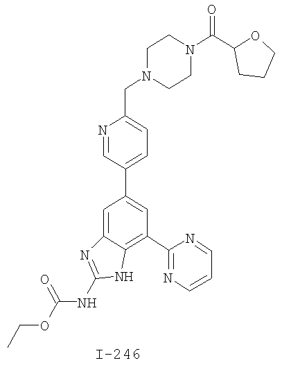 Соединения настоящего изобретения также анализировали на противомикробную активность с помощью теста на восприимчивость в жидких средах. Такие анализы осуществляли в соответствии с руководством последней редакции документа NCClS, контролирующего их применение на практике, “M7-A5 Methods for dilution Antimicrobial Susceptibility Tests for Bacteria that Grow Aerobically; Approved Standard – Fifth Edition (2000)”. В других публикациях, таких как “Antibiotics in laboratory Medicine” (Edited by V. Lorian, Publishers Williams and Wilkins, 1996), описаны основные практические методы проведения тестов антибиотиков в лабораториях. В общих чертах, несколько дискретных колоний Staphylococcus aureus (3-7), полученных из чашек со свежей штриховой культурой, переносили на соответствующую питательную бульонную среду, такую как МНВ, в которую, для более “требовательных” организмов, если это необходимо, были добавлены соответствующие компоненты. Эти культуры выращивали в течение ночи до высокой плотности, а затем 1000- или 2000-кратно разводили с получением плотности инокуляции 5×105 и 5×106 КОЕ/мл. Альтернативно, свежесобранные колонии могут быть инкубированы при 37оС в течение приблизительно 4-8 часов до тех пор, пока мутность культур не будет равной или не будет превышать 0,5 по стандарту McFarland (приблизительно 1,5×108 клеток/мл), а затем они могут быть разведены с получением того же самого КОЕ/мл, как описано выше. В более привычном методе получают инокулят с использованием коммерчески доступного механического устройства (BBL PROMPT System), в котором пять колоний непосредственно контактируют со стержнем, имеющем на своем нижнем конце штриховые канавки, а затем получают суспензию бактерий в соответствующем объеме физиологического раствора. Эту клеточную суспензию разводят до соответствующей клеточной плотности инокулята. Бульон, используемый для тестирования, состоит из среды МНВ, в которую было добавлено 50 мг/л Ca2+ и 25 мг/л Mg2+. Затем получали панели для стандартного разведения контрольных антибиотиков и хранили в соответствии со стандартами NCCIS М7-А5, при этом интервал разведения обычно составлял от 128 мкг/мл до 0,015 мкг/мл (2-кратное серийное разведение). Свежие тестируемые соединения растворяли и разводили в день проведения экспериментов; при этом использовали те же самые или подобные интервалы концентраций, как указано выше. Тестируемые соединения и контроль распределяли по мультилуночному планшету и добавляли тестируемые бактерии так, чтобы конечная инокуляция составляла приблизительно 5×104 КОЕ на лунку, а конечный объем составлял 100 мкл. Планшеты инкубировали при 35°С в течение ночи (16-20 часов) и визуально оценивали на мутность или проводили количественную оценку на мультилуночном планшет-ридере. Минимальная ингибирующая концентрация в конечной точке (MIC) представляет собой наименьшую концентрацию лекарственного средства, при которой не происходит роста тестируемого микроорганизма (Staphylococcus aureus). Полученные данные также сравнивали с соответствующими табличными данными, имеющимися в вышеуказанных двух публикациях, для подтверждения того, что уровень антибактериальной активности находится в соответствующих пределах для данного стандартизированного анализа.