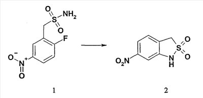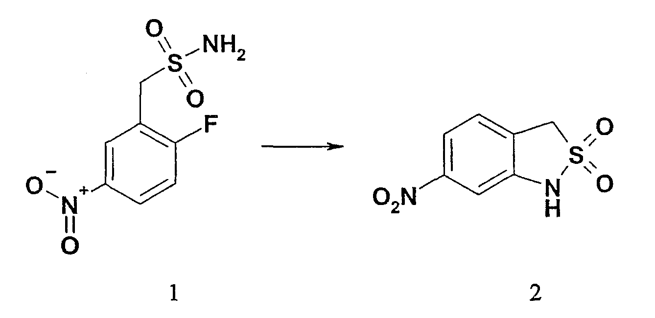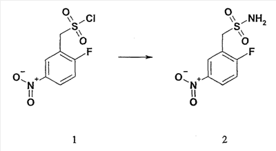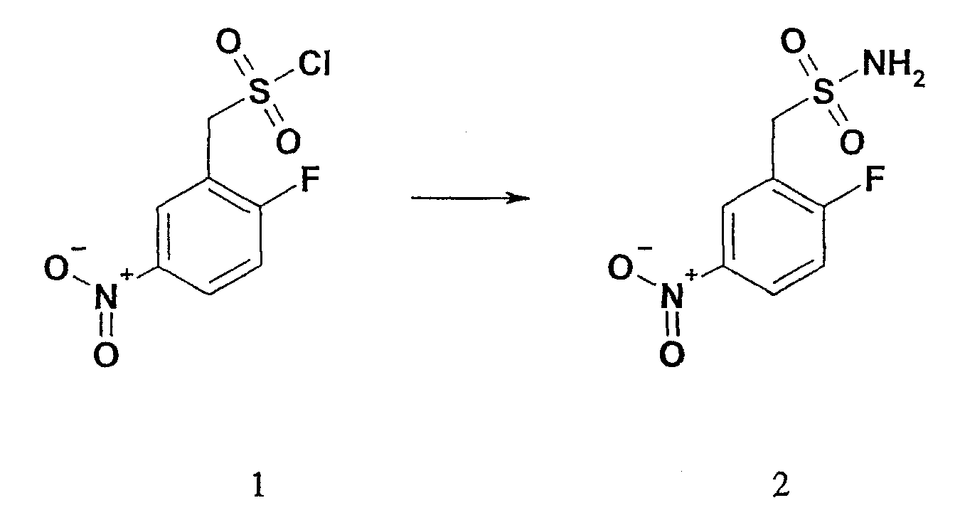 Раствор хлорангидрида сульфоновой кислоты 1 (30,3 г, 0,12 моль) в CH2Cl2 (125 мл) добавляют по каплям к концентрированному аммиаку (90 мл, 1,2 моль) при комнатной температуре. Смесь перемешивают 20 часов при комнатной температуре и затем подкисляют HCl (1 н.) до рН 1. Затем органическую фазу отгоняют при пониженном давлении, причем продукт реакции осаждается в виде светло-желтого твердого вещества. Затем этот продукт реакции отфильтровывают.