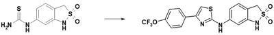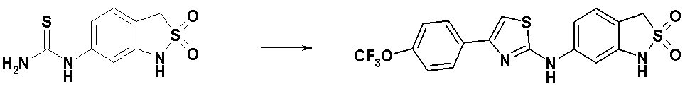 73 мг (0,3 ммоль) тиомочевины растворяют в 5 мл абсолютного этанола и смешивают с 85 мг (0,3 ммоль) 4-(трифторметокси)фенацилбромида. Реакционную смесь нагревают с обратным холодильником в течение 5 часов при дефлегмации растворителя.