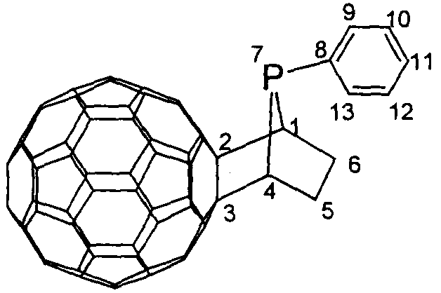 Известный способ не позволяет получать 2,3-фуллеро[60]-7-фенил-7-фосфабицикло[2.2.1]гептан (1).