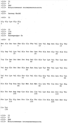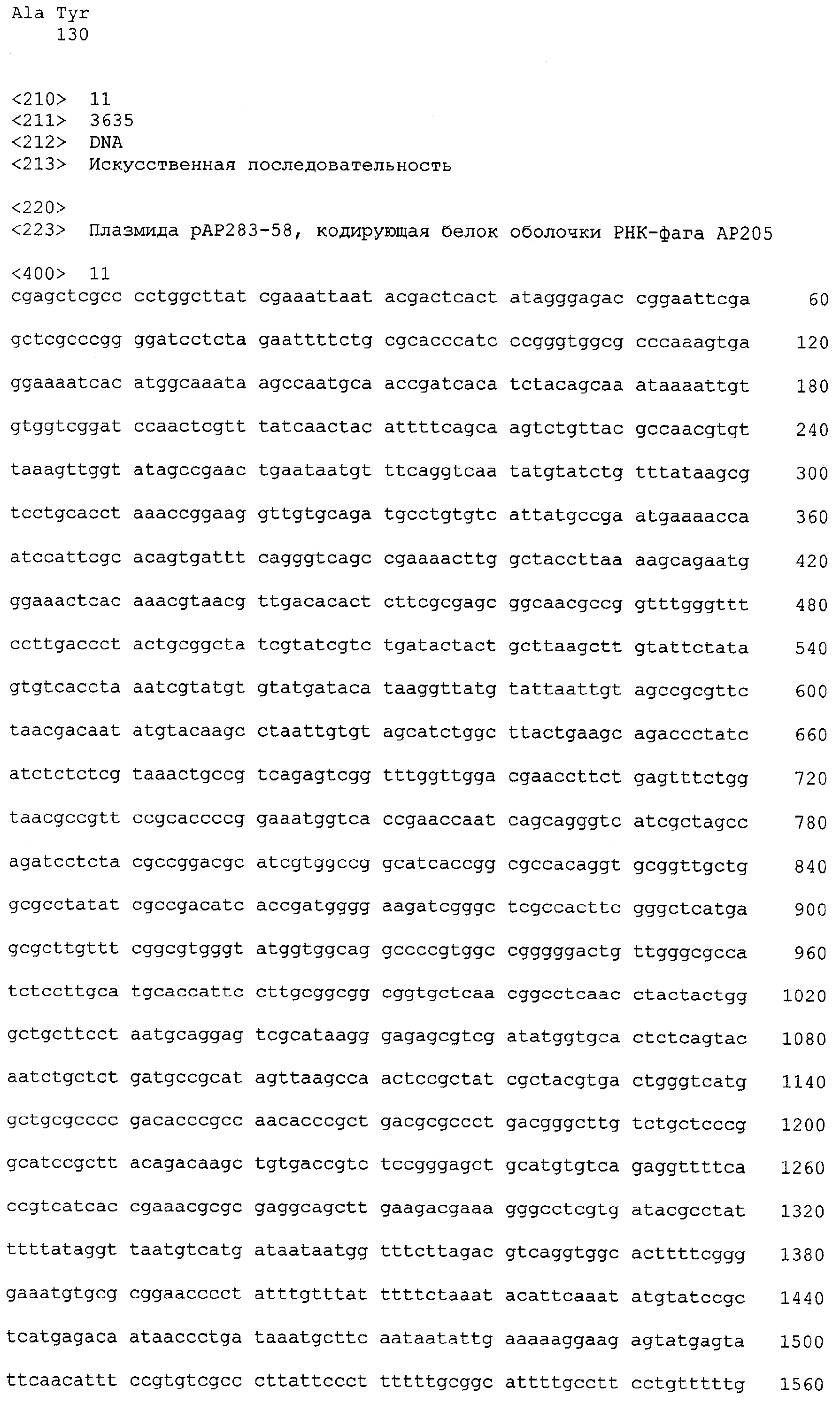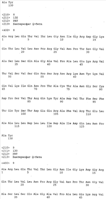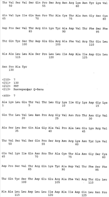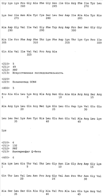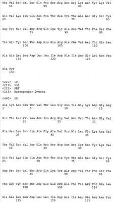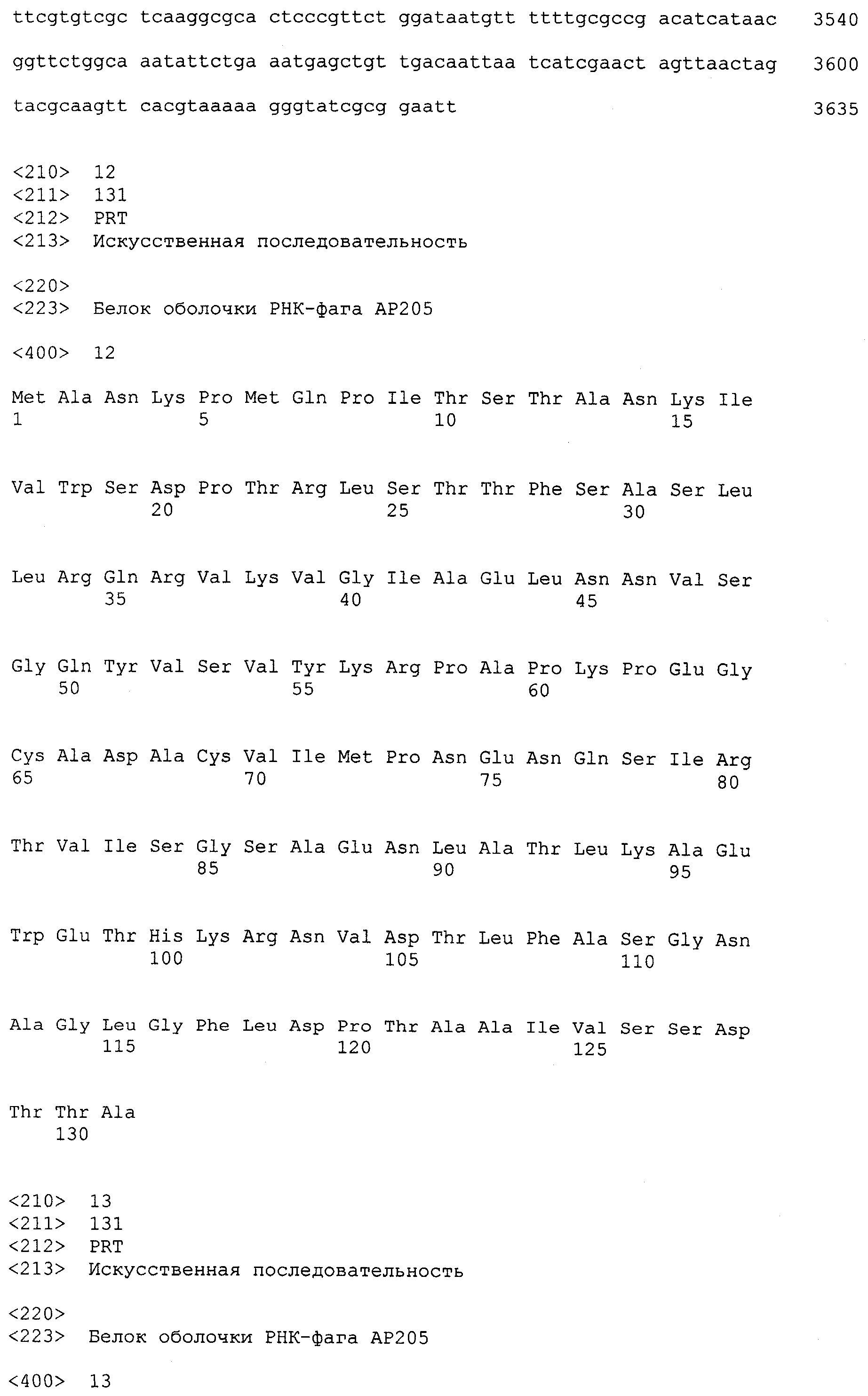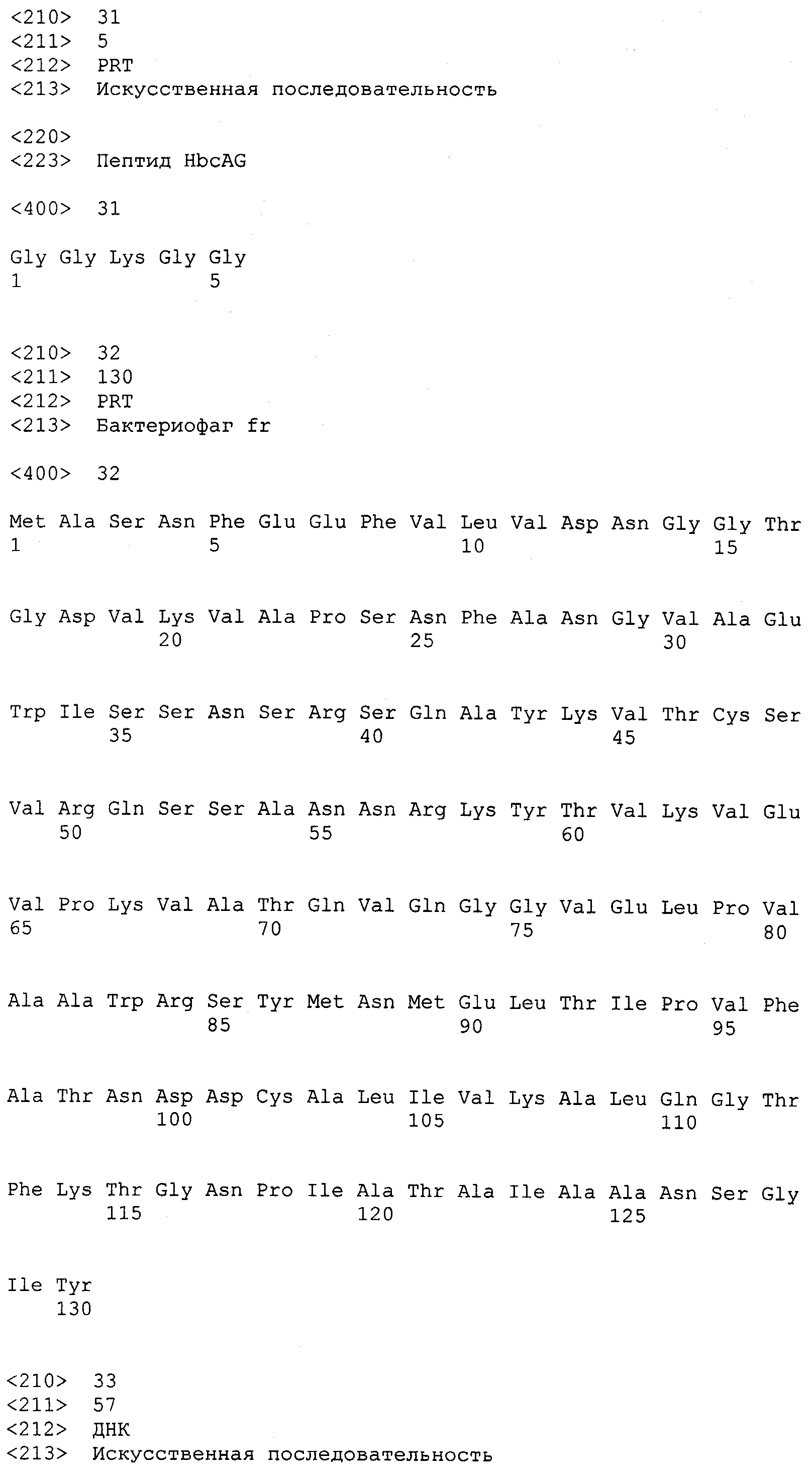 CLASS=”b560m”recombinant papillomavirus particles, Proc. Natl. Acad. Sci. USA, 1999, v.96, n.5, p.2373-2378. WO 0023955 A1, 27.04.2000. KOLETZKI D. et al. Mosaic hepatitis В virus core particles allow insertion of extended foreign protein segments, J. Gen. Virol., 1997, v.78, Pt 8, p.2049-2053. KOZLOVSKA T.M. et al. RNA phage Q beta coat protein as a carrier for foreign epitopes, Intervirology, 1996, v.39, n.1/2, p.9-15. БАЗА ДАННЫХ «BLAST», Chain C. Bacteriophage Q Beta Capsid, под №1QBE_C GI:1633138, размещено 10.01.1996. БАЗА ДАННЫХ «BLAST», Enterobacteria phage Qbeta, под №AAA16663.1 GI:145163, размещено 10.03.1994. RU 2169010 C2, 20.06.2001.