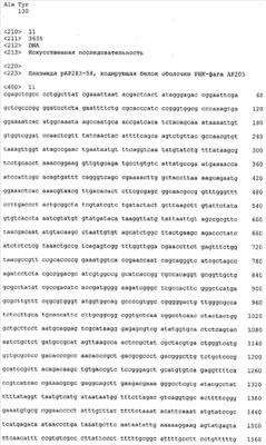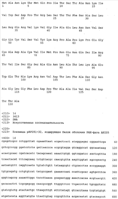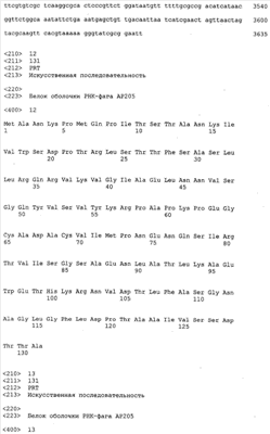 10. Конъюгат по п.4, где указанные рекомбинантные белки содержат смесь белков оболочки с аминокислотными последовательностями SEQ ID NO: 4 или ее мутантными вариантами и SEQ ID NO: 3.