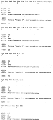 26. Способ иммунизации животного против ангиотензиновой пептидной составляющей, предусматривающий введение животному конъюгата по п.1 или 24 при таких условиях, что у указанного животного вырабатывается иммунный ответ к указанной ангиотензиновой пептидной составляющей.