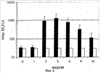 Фигура 4. Ангиотензин II-специфические IgG титры у здоровых добровольцев после единичной иммунизации Q -Ангио 1. Анти-ангиотензин II IgG титры 16 здоровых добровольцев определяли с помощью ELISA. Столбчатые диаграммы обозначают среднее геометрическое титров у индивидуумов с 95% доверительным интервалом. Титры индивидуумов, получавших активный препарат, показаны в виде закрашенных столбчатых диаграмм. У всех индивидуумов, получавших плацебо (n=4, не закрашенные столбчатые диаграммы), наблюдали титры ниже нижнего предела количественных показателей, установленного как 1:30.