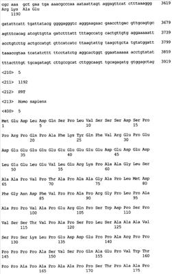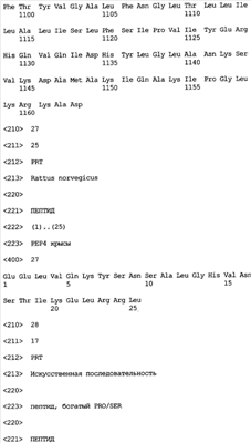 «Гомология» в контексте настоящего описания применительно к нативному полипептиду и его функциональному производному определяется как процент аминокислотных остатков в исследуемой последовательности, которые идентичны остаткам соответствующего нативного полипептида после выравнивания последовательностей и при необходимости заполнения брешей для достижения максимальной процентной гомологии, причем любые консервативные замены не рассматриваются как часть идентичности последовательностей. Ни N- или С-концевые расширения, ни вставки не будут истолковываться как элементы, снижающие идентичность или гомологию. Методы сравнения и предназначенные для этого компьютерные программы хорошо известны специалистам, работающим в данной области.