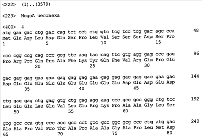 MERKLER DORON ET AL. Locomotor recovery in sprinal cord-injured rats treated with an antibody neutralizing the myelin-associated neurite growth inhibitor Nogo-A JOURNAL OF NEUROSCIENCE vol 21 no 10 15.05.2001, DATA BASE, GenPept, 1NLDL, 02.07.1996. RU 2128226 C1, 27.03.1999.