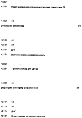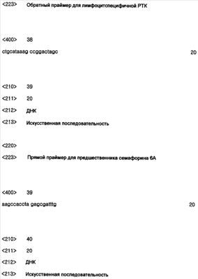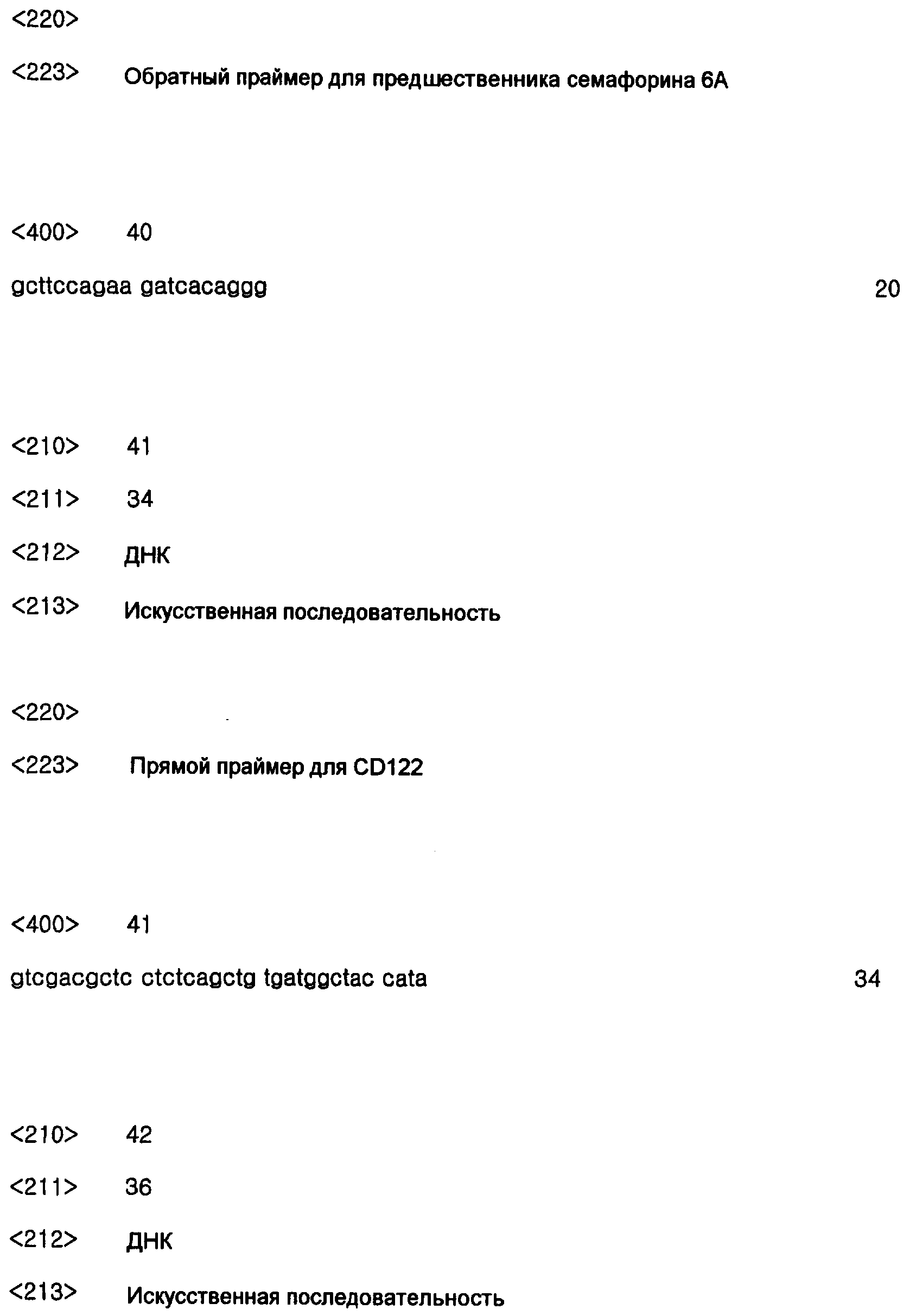 Нуклеотидные последовательности, представленные SEQ ID NO:39 и NO:40, представляют собой праймерные последовательности, используемые для ОТ-ПЦР с предшественником семафорина 6A в примере 6.
