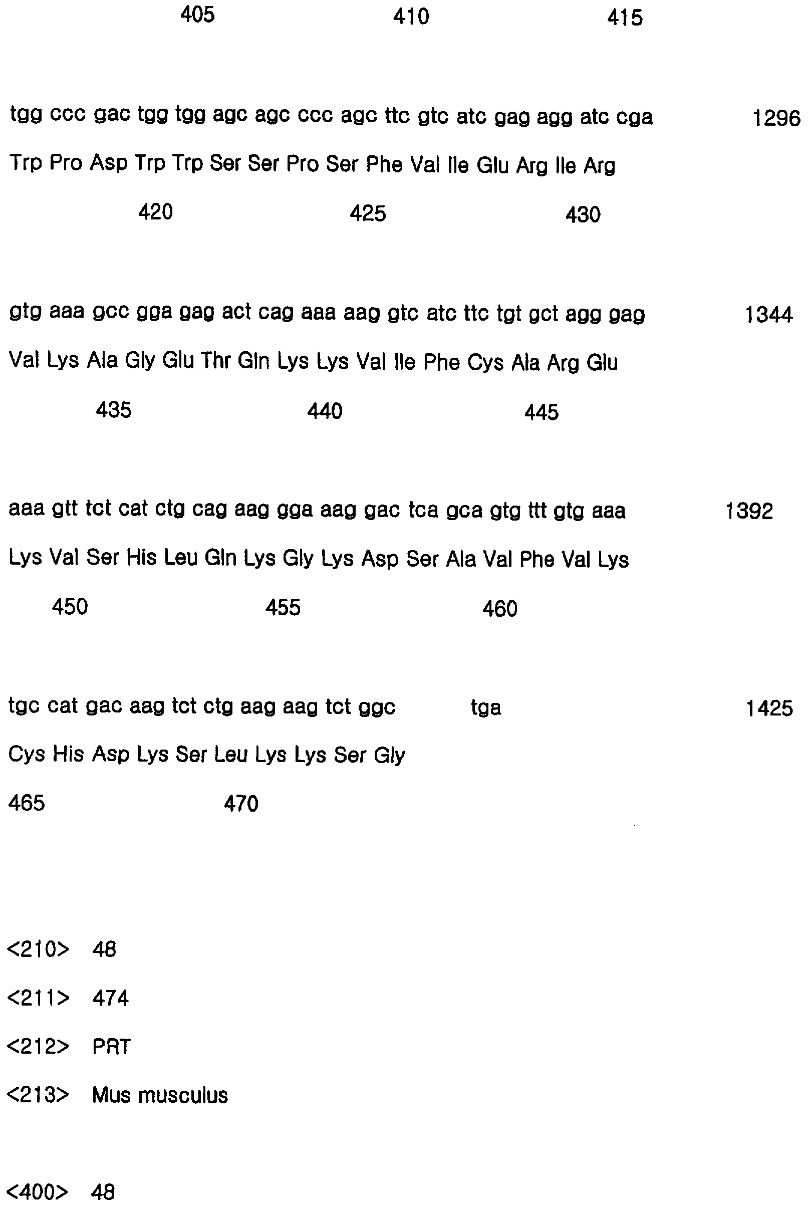 Нуклеотидная последовательность, представленная SEQ ID NO:48, представляет собой аминокислотную последовательность белка мыши.