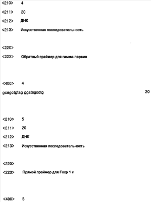 Нуклеотидные последовательности, представленные SEQ ID NO:3 и NO:4, представляют собой праймерные последовательности, используемые для ОТ-ПЦР с гамма-парвином в примере 6.