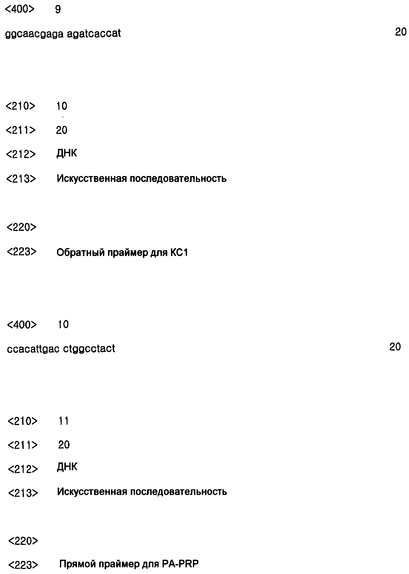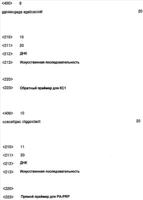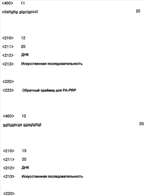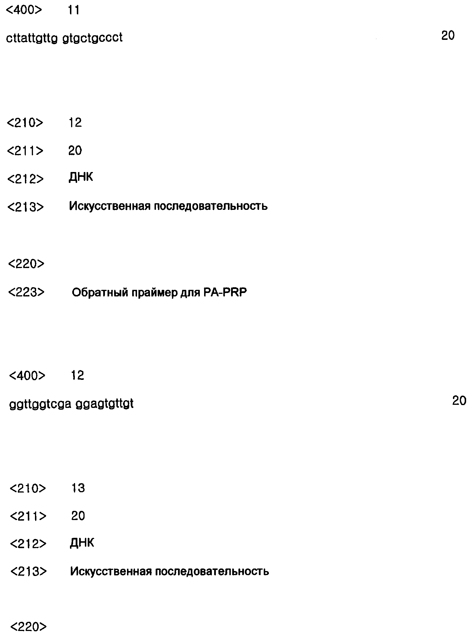 Нуклеотидные последовательности, представленные SEQ ID NO:11 и NO:12, представляют собой праймерные последовательности, используемые для ОТ-ПЦР с родственной РА-фосфатазой фосфоэстеразой (PA-PRP) в примере 6.