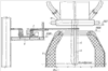 Вода для охлаждения смывного кольца 4 подводится и отводится по трубам 13, размещенным на консоли 5. Здесь же расположен трубопровод для подвода кислорода 14 к смывному кольцу 4, а с оборотной стороны поворотной консоли 5 закреплен контргруз 15 для уравновешивания консоли 5.
