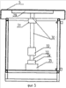Привод подъема/опускания крыши 24 состоит из двух лифтов, каждый из которых выполнен следующим образом. К внутренней стороне крыши, вдоль ее боковой стороны жестко прикреплен уголок 29. К уголку 29 в центральной его части прикреплен верхним своим концом вертикальный шток 30, проходящий сквозь направляющую втулку 31 в нижнюю часть корпуса. Нижний конец штока 30 жестко прикреплен к торцу ходовой гайки 32, находящейся в сцеплении с ходовым винтом 33, который через муфту 34 соединен с выходным валом электродвигателя 35.