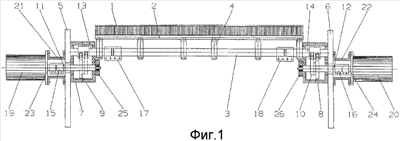 Позициями 25 и 26 на фиг.1 обозначены датчики вращения, с помощью которых могут регистрироваться частота вращения и угловое положение входных звеньев 11, 12. Это служит для электронного регулирования согласованного вращения привода берда согласно изобретению, как это будет пояснено ниже.